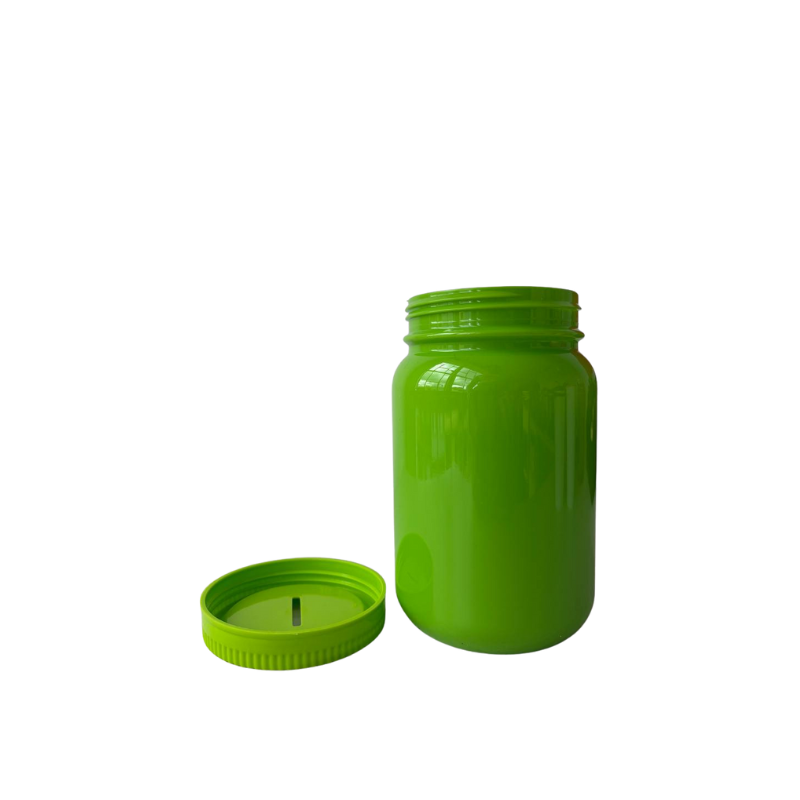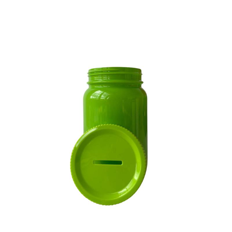 Incluye tapa con ranura para monedas y billetes. La tapa se sella a presión una sola vez: una vez que la cierras por primera vez, para retirar el dinero debes desprender/romper el sello y no se puede volver a dejar hermética. Esto evita aperturas furtivas y es ideal para retos de ahorro, campañas escolares, donaciones o rifas.