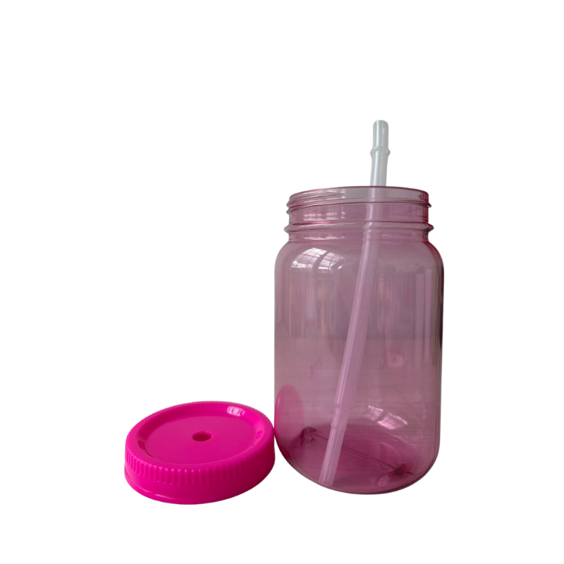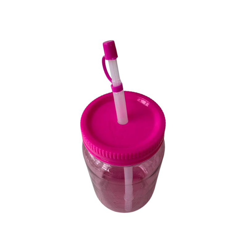 Vaso tipo tarro con pitillo reutilizable y tapa roscada. Perfecto para fiestas, loncheras y campañas promocionales. El tarro translúcido permite ver el contenido, mientras la tapa evita derrames y el aro/gancho facilita colgarlo o llevarlo en la mano. Ideal para personalizar con sticker o impresión.